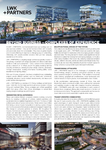 Kong and mainland China. Strong synergies and unified capabilities LWK + PARTNERS works with major developers to craft a series of