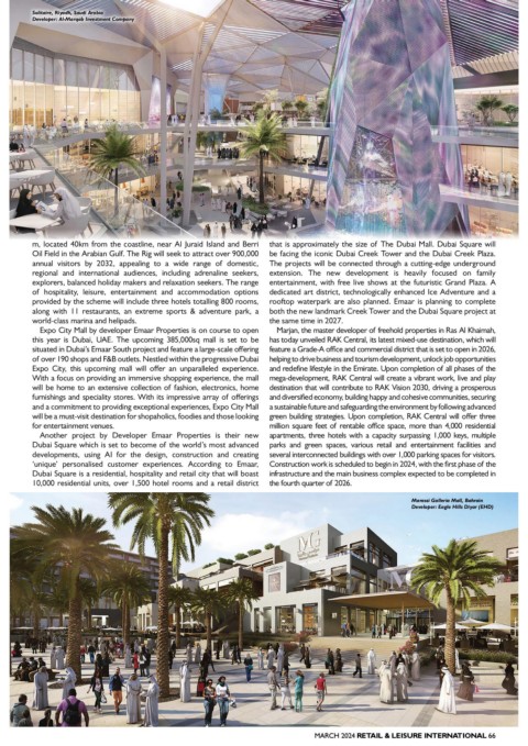 lavish levels of comfort and exclusivity. An architectural masterpiece King Abdullah Financial District, affirming this prime location within Expo City Mall by developer Emaar Properties is on course to open Marjan, the master developer of freehold properties in Ras Al Khaimah,