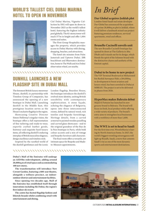 12 RETAIL & LEISURE INTERNATIONAL OCTOBER 2025 OCTOBER 2025 RETAIL & LEISURE INTERNATIONAL 13