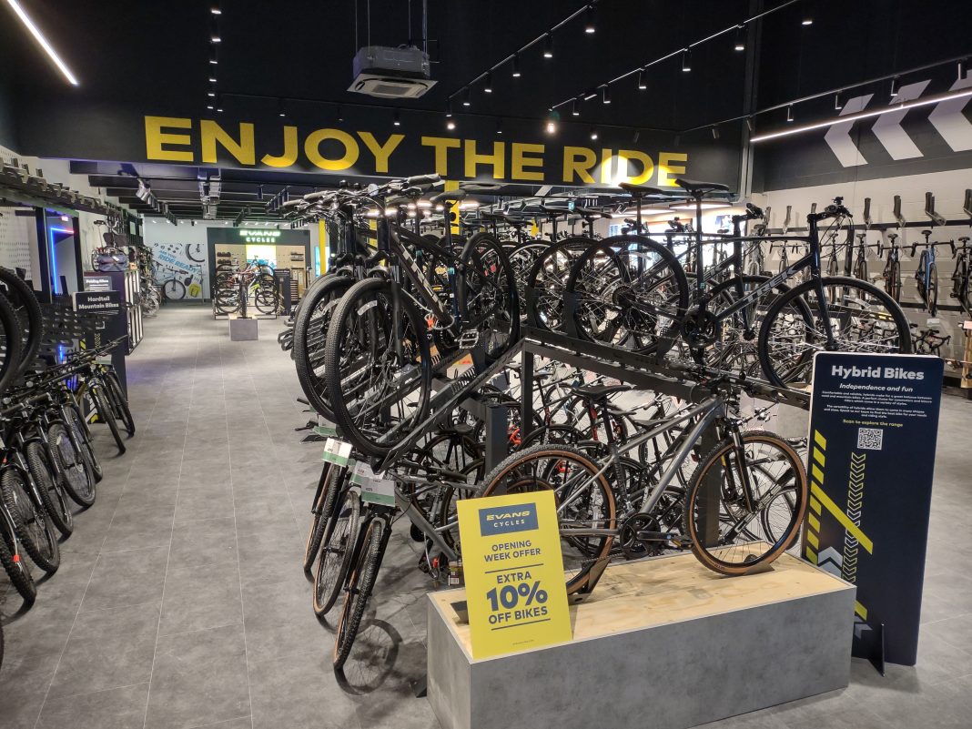 The Evans Cycles Cheshunt store is situated in the Brookfield Retail Park, towards the north of the town. Covering 5,200sq ft, the new store will stock 170 bikes covering road, MTB hybrid, electric and kids bikes, from well renowned brands such as Specialized, Cannondale, Brompton, Raleigh and their own Pinnacle brand. Clothing and accessories are also available from brands such as Castelli, Endura, Giro and Fizik. The store will also serve the local community with a fully equipped workshop where customers can get their bikes fixed by one of Evans’ expert mechanics.