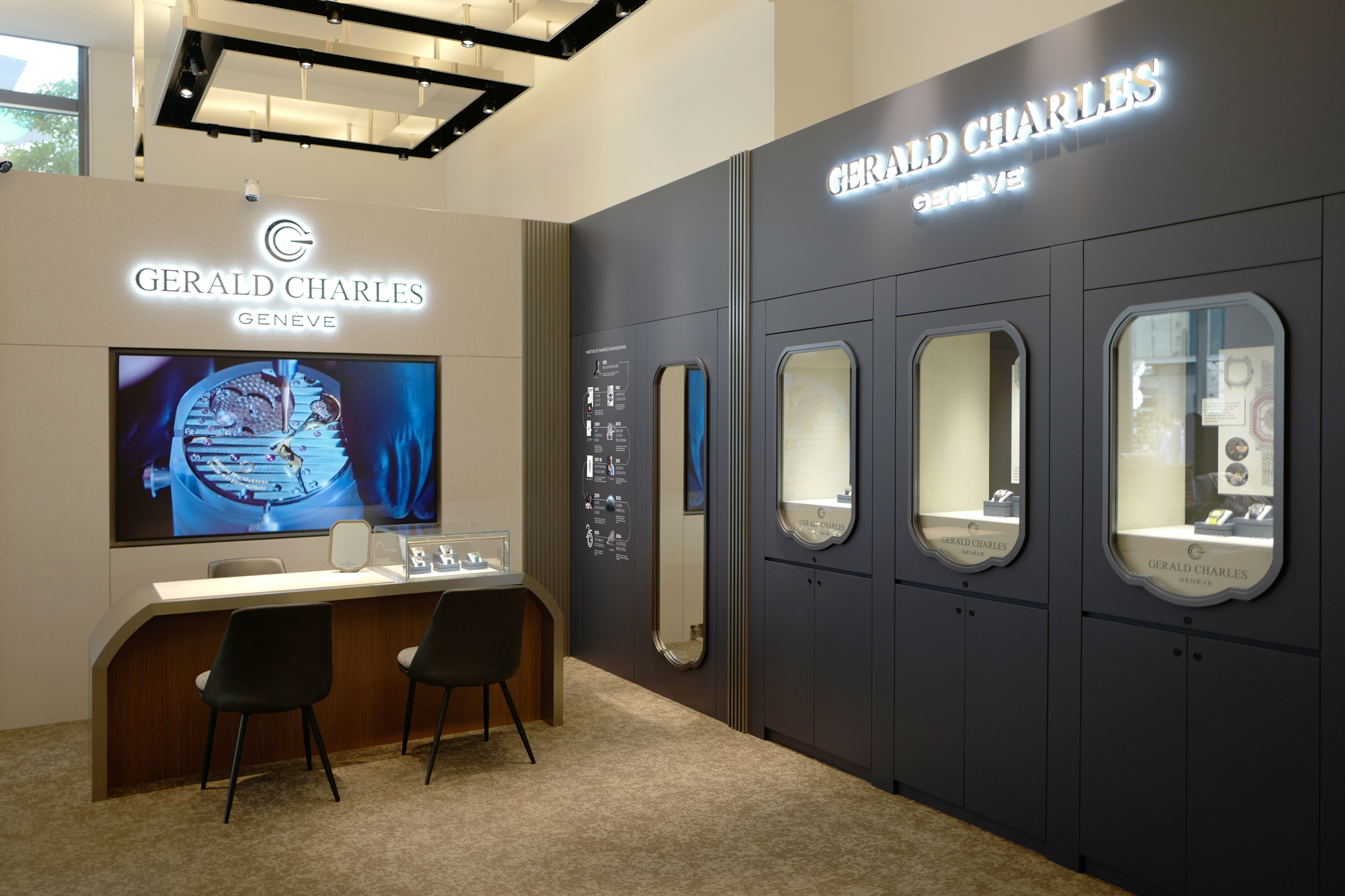 The new boutique features the latest Gerald Charles boutique concept, developed by the maison’s headquarters. Designed as an immersive and refined environment, the space reflects the brand’s contemporary identity while honouring its artistic and architectural heritage.