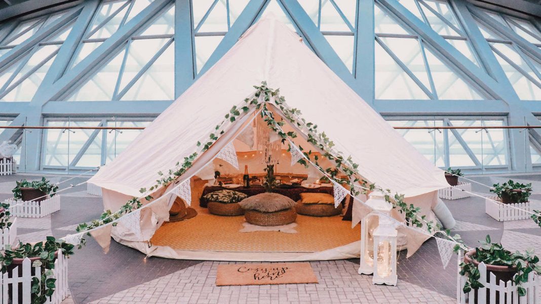 In a time where travel has all but come to a halt, Jewel Changi Airport has extended their offerings to encapsulate innovative staycations and food and beverage deals. The concept – ‘Glampcations in the Clouds’ offers guests the opportunity to stay overnight in a large tent that have been set up amid a number of ficus trees that are adorned with fairy lights. There are a number of other attractions including a large sky net, a hedge maze and topiary walks.