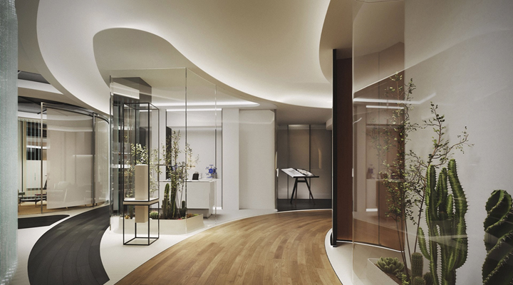 The space consists of a meditation room to encourage relaxation and inner calm, a transparent sanctum to “showcase the art of horology” and a sports bar as a recreational hub inspired by Australian pubs.