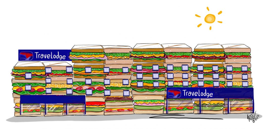In addition the hotel chain also commissioned, award winning cartoonist and Illustrator, Neil Kerber, to create a bespoke piece of artwork showcasing Sandwich Travelodge as a hotel made out of sandwiches.